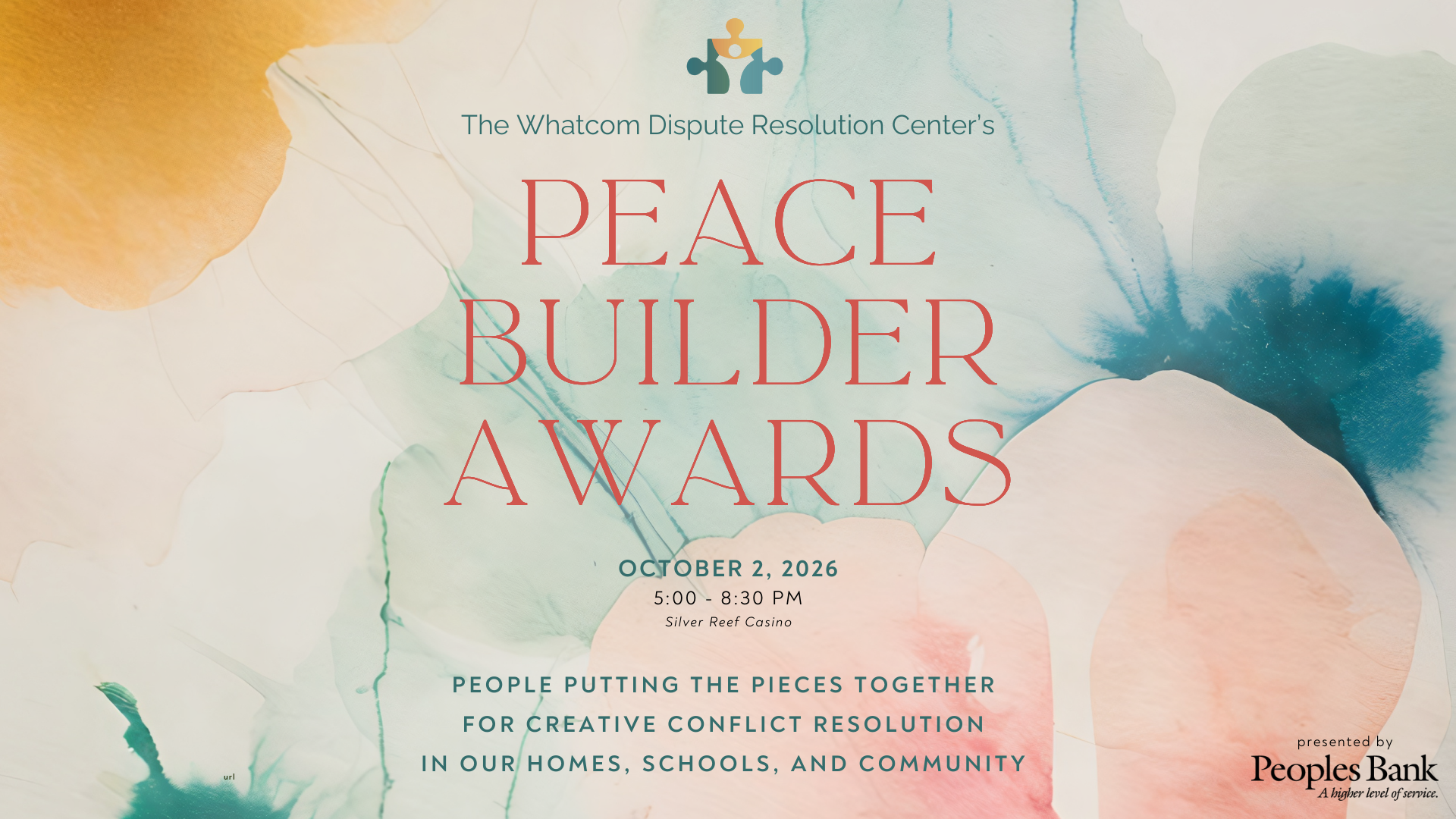 Our 23rd Annual Peace Builder Awards will be held on October 2nd at the Silver Reef Casino. Since 2003, this event has been a cherished tradition, honoring the individuals and organizations whose dedication to community-building creates lasting, positive change across Whatcom County.