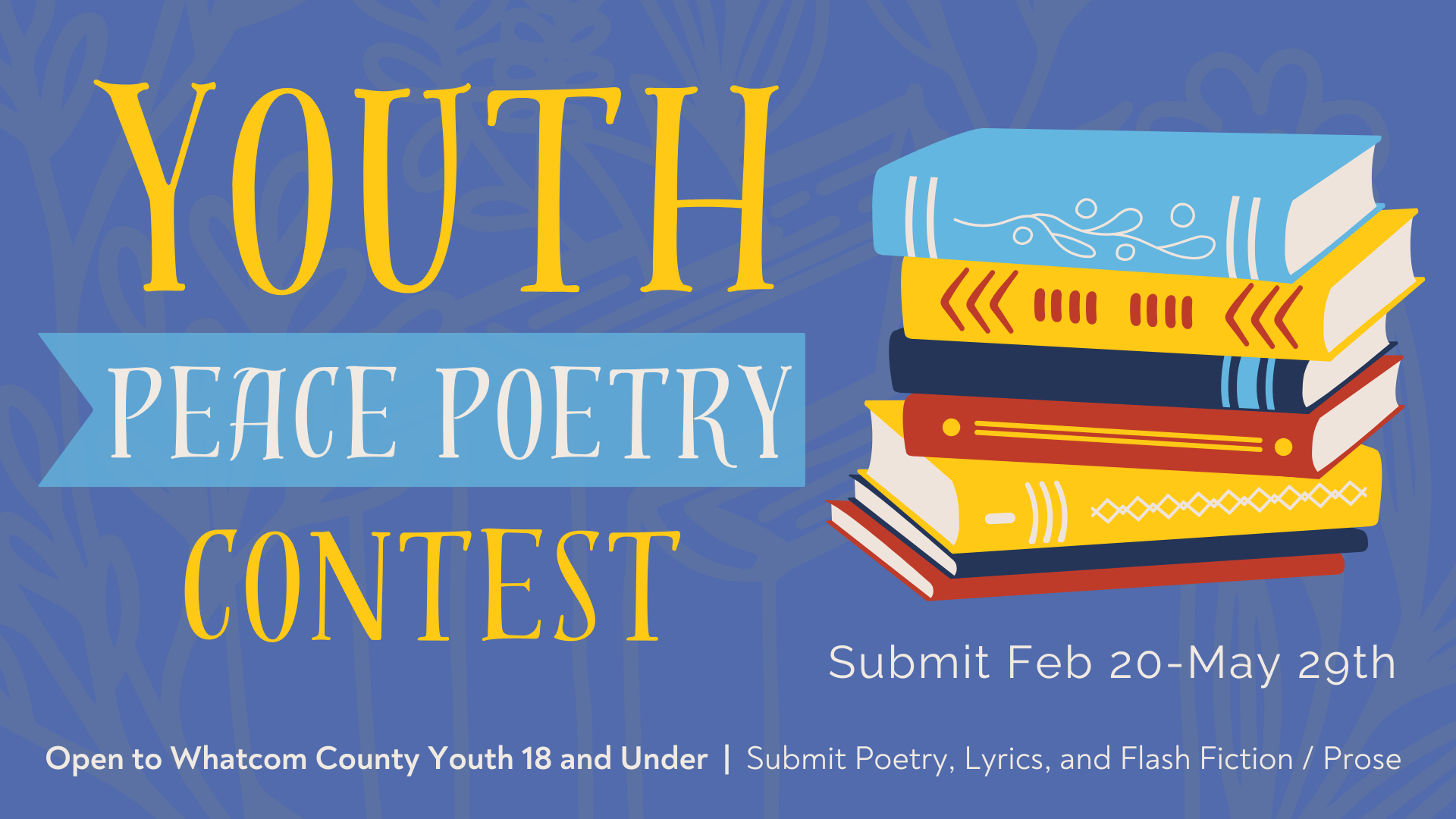 Every year, the WDRC hosts our annual Youth Peace Poetry Contest, which inspires youth to write creatively about peace. Youth ages 18 and younger who live in Whatcom County have submitted their poems, songs, short stories, and other forms of short creative writing on the theme of peace.